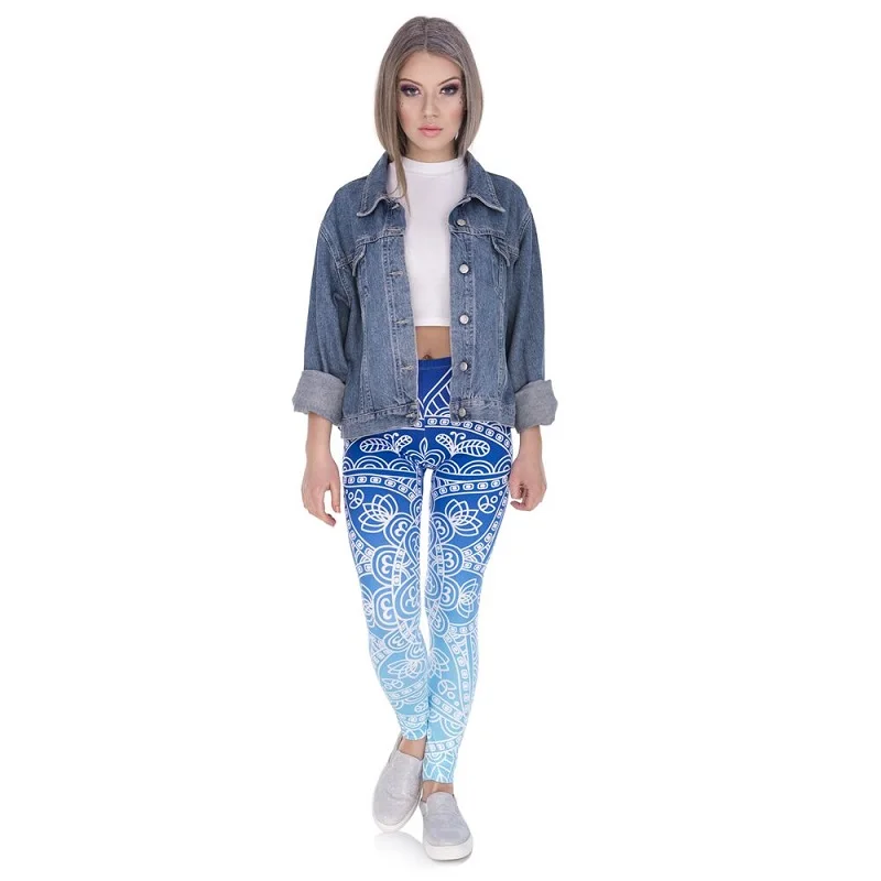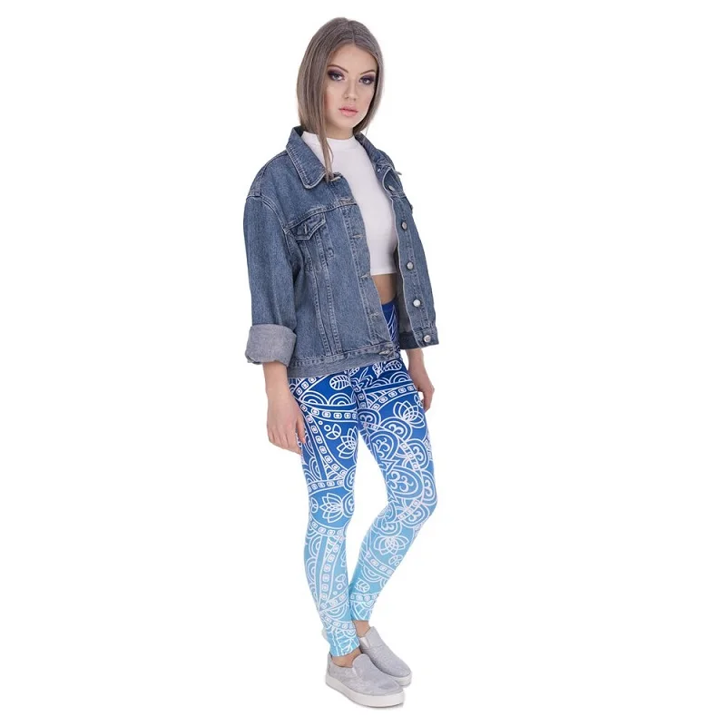Blue Mandala Sexy Slim Leggings Women High Waist Stretch