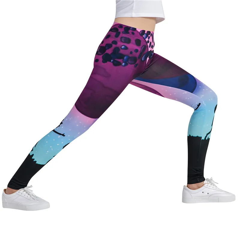 Colorful Purple Artistic Galaxy Fitness Workout Leggings for Women