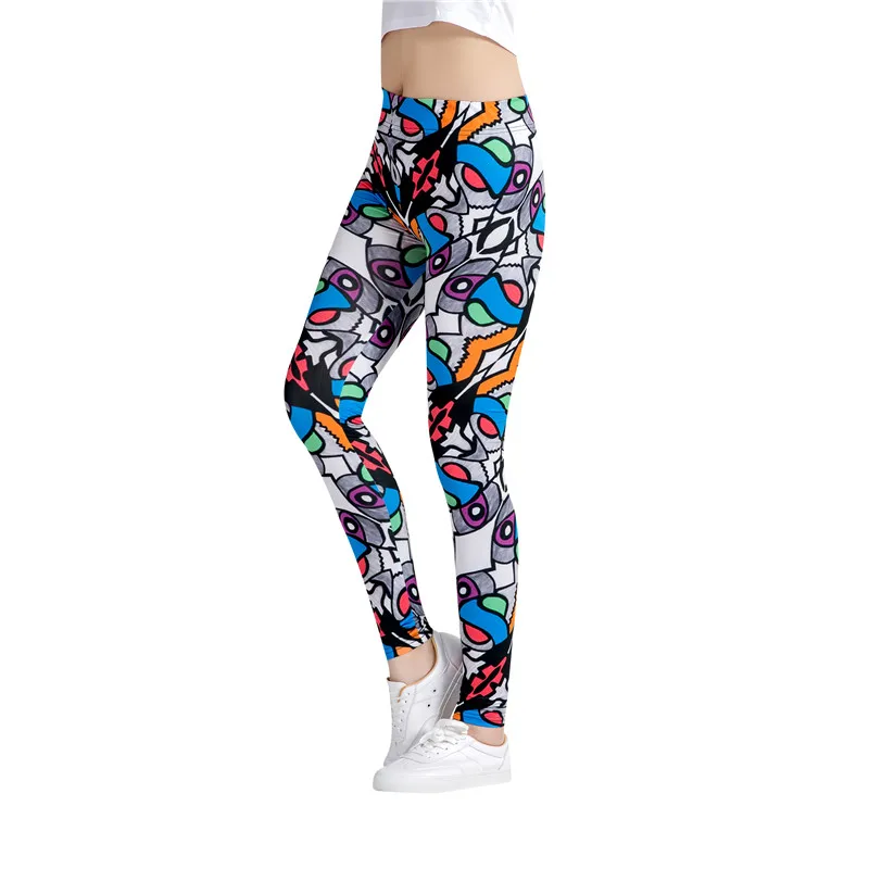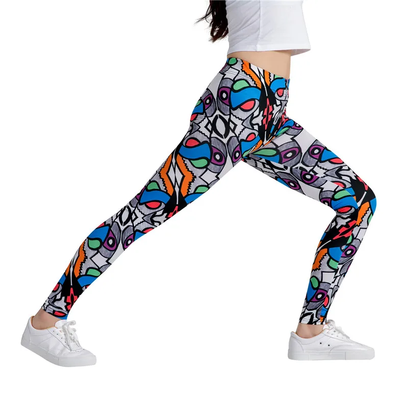 Colorful Geometric Pattern Sexy Silm Legins Leggings Women High Waist Stretch