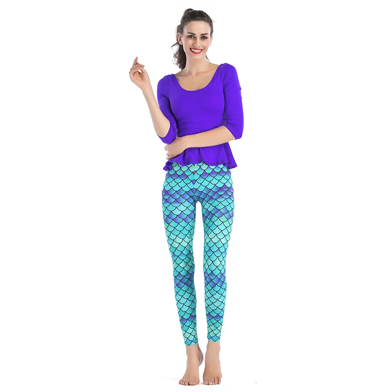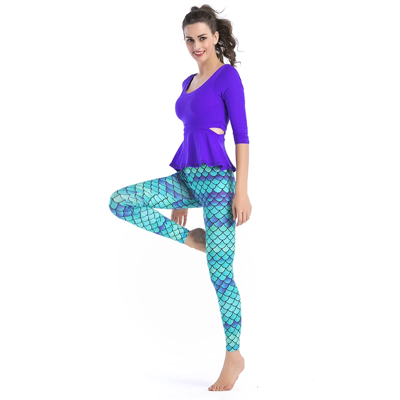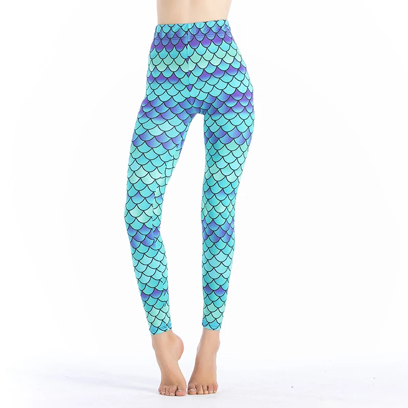 Green Blue Mermaid Fish Scale Fashion Women Workout Fitness Leggings